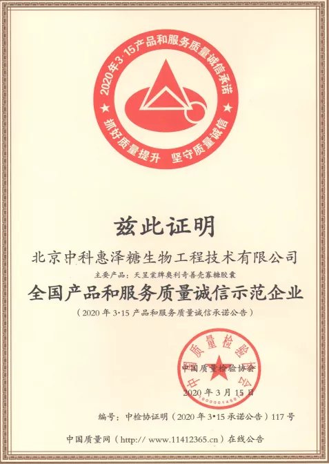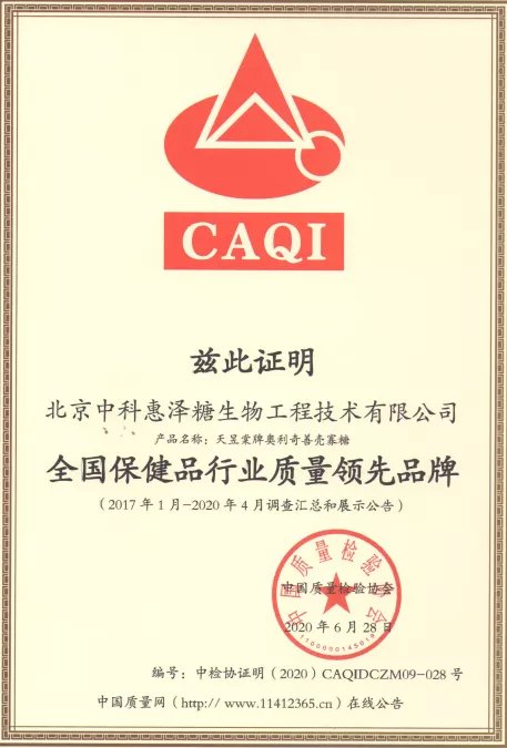 在疫情防控阻擊戰(zhàn)取得階段性勝利和重大戰(zhàn)略成果,全國范圍復(fù)工復(fù)產(chǎn)如火如荼展開的同時(shí),中科惠澤公司與奧利奇善殼寡糖膠囊喜報(bào)頻傳,于2020年“3·15”和6月28日,再次榮獲由中國質(zhì)量檢驗(yàn)協(xié)會(huì)頒發(fā)的《全國產(chǎn)品和服務(wù)質(zhì)量誠信示范企業(yè)》、《全國保健品行業(yè)質(zhì)量領(lǐng)先品牌》、《全國質(zhì)量信得過產(chǎn)品》、《全國質(zhì)量檢驗(yàn)穩(wěn)定合格產(chǎn)品》等一系列榮譽(yù)證書。