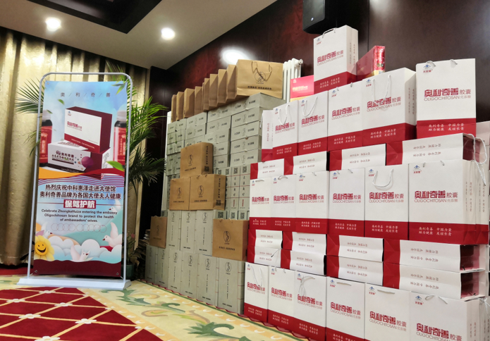 奧利奇善殼寡糖膠囊和奧利奇善西高殼寡糖雪蓮飲品,作為中國第一個由國家科學(xué)院所研發(fā)研制并走進大使館的健康品牌,是北京中科惠澤糖生物工程技術(shù)有限公司與中國科學(xué)院兩大科研院所合作,運用先進的生物技術(shù)與中國傳統(tǒng)中藥材相融合,開發(fā)出來的具有中國特色的健康品,希望對出席外賓的健康有所助益。