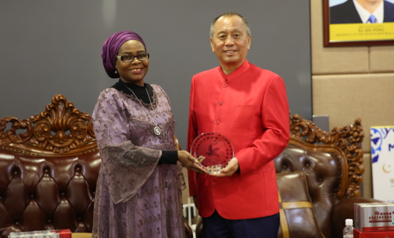 活動中中科惠澤董事長張樹林先生準備了健康禮品:奧利奇善殼寡糖雪蓮飲品、奧利奇善殼寡糖膠囊和中醫(yī)艾灸,贈給扎拉主席。同時中國保健協(xié)會王中秘書長也贈與扎拉夫人保健協(xié)會紀念獎牌。扎拉主席為王中秘書長和張樹林先生頒發(fā)英聯(lián)邦協(xié)會特別榮譽獎牌。