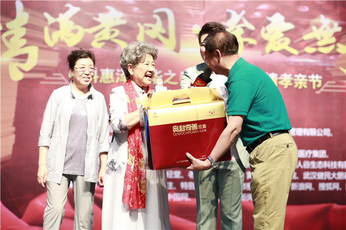 除此之外,抗癌英雄代表還有我們的陶玉玲老師。很難想象,這位在舞臺上歌聲嘹亮的老藝術(shù)家曾是三次癌癥患者。讓我們在敬佩的同時,心生感動。活動現(xiàn)場,來自中國科學(xué)院大連化學(xué)物理研究所1805課題組的曲天明總工程師、白雪芳研究員,以及來自大連中科殼寡糖研究中心副主任王欣,為我們可敬可愛的抗癌斗士陶玉玲老師,送上一份珍貴的禮物。