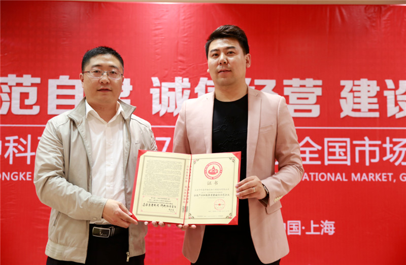 劉輝主任代表中國(guó)質(zhì)量檢驗(yàn)協(xié)會(huì)向中科惠澤頒發(fā)全國(guó)產(chǎn)品和服務(wù)質(zhì)量誠(chéng)信示范企業(yè)榮譽(yù)證書