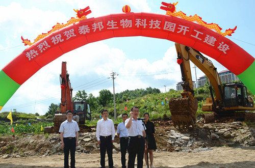 2017年6月8日上午,貴州泰邦舉行了簡短而隆重的“泰邦生物科技園”動工儀式?;ㄏ獏^(qū)委常委、副區(qū)長韓匡時、區(qū)園區(qū)辦副主任徐國敏、區(qū)工信局有關(guān)領(lǐng)導(dǎo)出席了動工儀式,公司常務(wù)副總經(jīng)理劉欣晏、副總經(jīng)理陳云華、財(cái)務(wù)行政總監(jiān)李云鵬、工程動力總監(jiān)劉詩平及員工代表參加了儀式,儀式由劉詩平總監(jiān)主持。